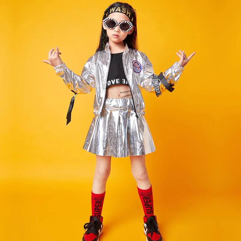 Hip Hop Boys Silver Jacket Girls Jazz Jogger Pants Street Dance Mini Skirt Clothes Se …