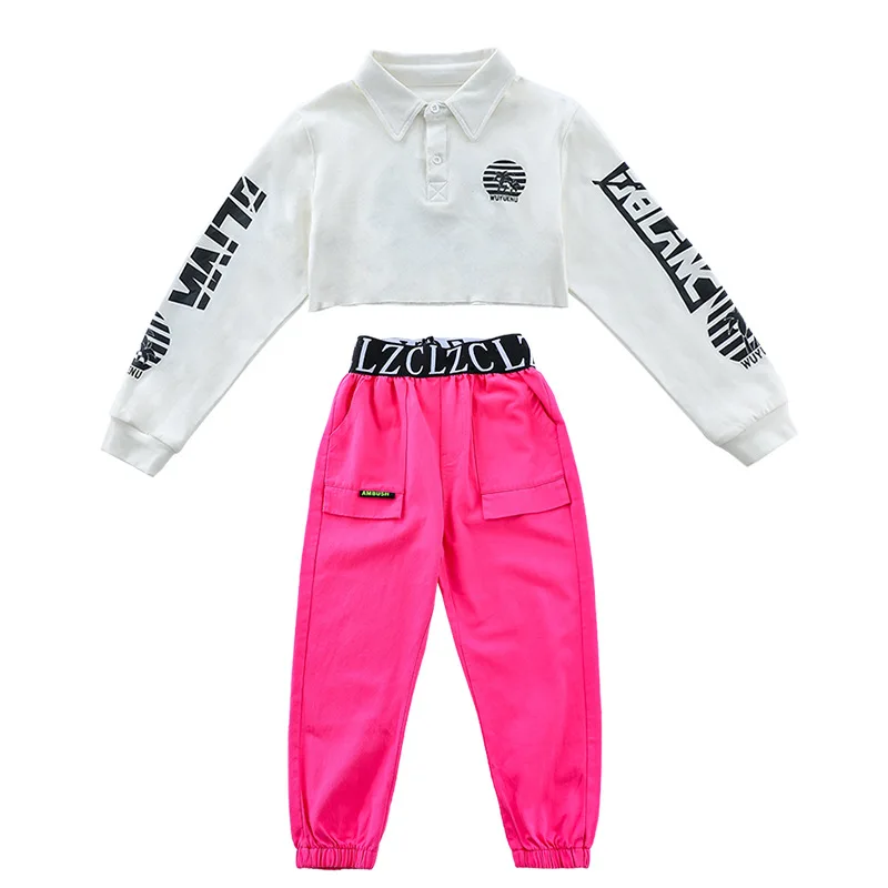 Hip Hop Girls Crop Top Pink Joggers Kids Sweatshirt Street Dance Cargo Pants Streetwe …