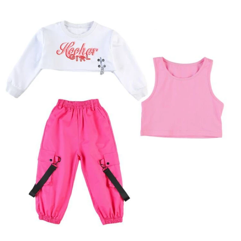 Hip Hop Girls Pink Cargo Pants Kids Crop Top Skirt Princess Street Dance Clothes Set …