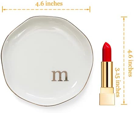 HOME SMILE Initials Ring Dish Jewery Tray with Personalized M-Monogrammed Engagement Wedding Gifts for Friends,Sister,Birthday Christmas Gifts for Women,Ceramic White