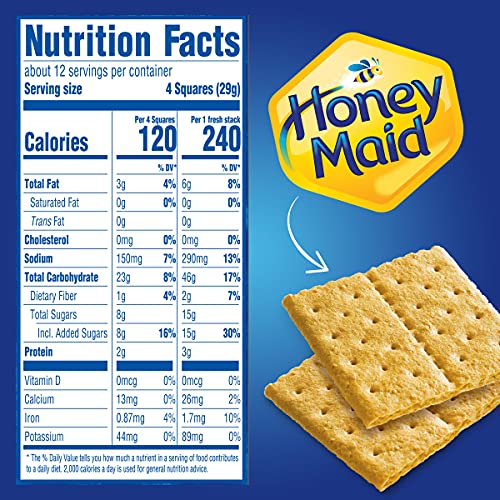 Honey Maid Fresh Stacks Graham Crackers are delicious snacks, conveniently packaged in small stacks for maximum freshness and easy packing. Made with real honey, these cracker snacks have just the right amount of sweetness to keep you happy. These square honey grahams are a great size, and they stack perfectly with chocolate and marshmallows for campfire s’mores. Keep these honey graham crackers in your desk for an afternoon treat, or tuck some into a lunchbox for quick packing. This box has six individual fresh stacks for freshness and simple storage.