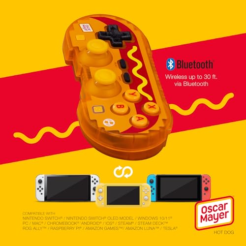 Love the irresistible taste of Oscar Mayer Wieners? Now you, a true grillmaster and hot dog enthusiast, can showcase your love for your favorite hot dogs with your very own official Oscar Mayer Wiener gaming controller! The Pixel Art Controller is a limited-edition, Bluetooth gaming controller (up to 30 ft.), featuring a wide range of compatibility; a stylish Oscar Mayer hot dog design; a nifty turbo function; retro design with modern ergonomics; and an included Type-C cable. Compatible With: NINTENDO SWITCH, NINTENDO SWITCH OLED MODEL, WINDOWS 10/11 PC, CHROMEBOOK, MAC, ANDROID, IOS, STEAM, STEAM DECK, ROG ALLY, RASPBERRY PI, AMAZON GAMES/AMAZON LUNA, TESLA Not only is the Pixel Art Controller fun and collectable, but it’s also made with both casual and hardcore gamers in mind. The high-quality symmetrical sticks, responsive action button feel, and reliable triggers are essential to competitive play. It doesn’t hurt that these look amazing on a shelf. These are LIMITED EDITION. When they’re gone, they’re gone!