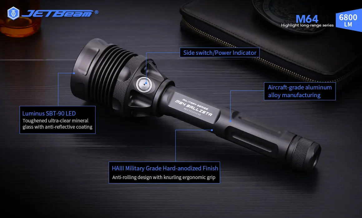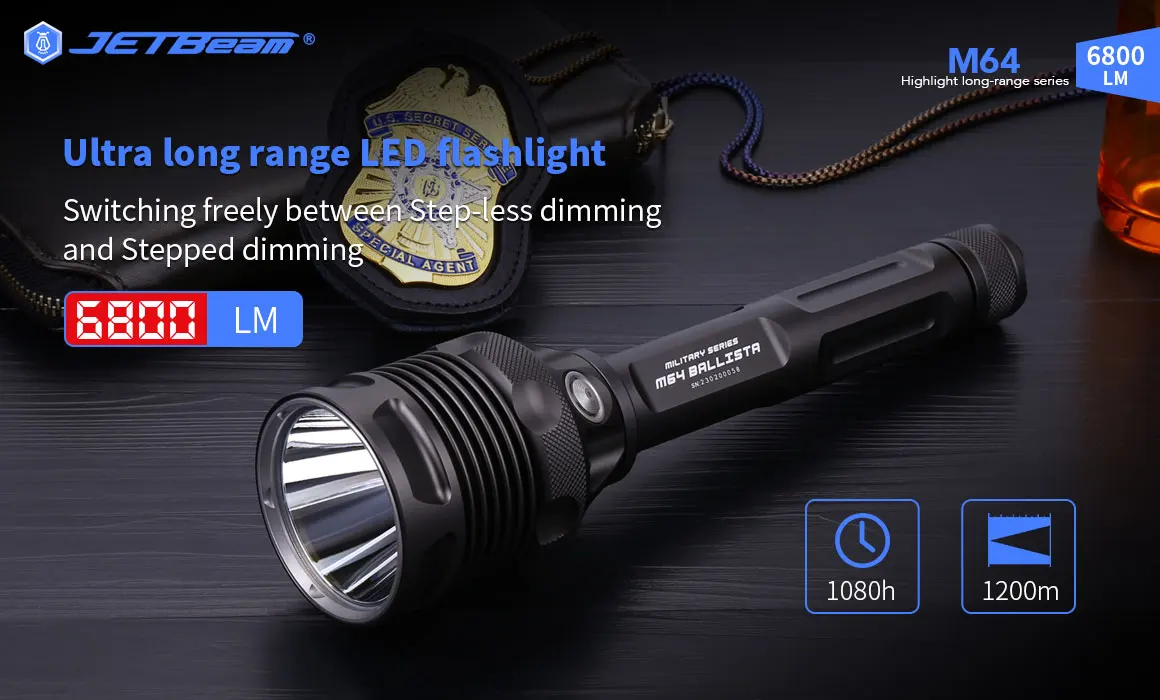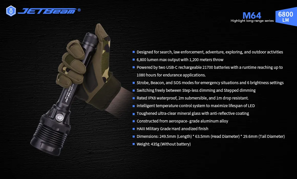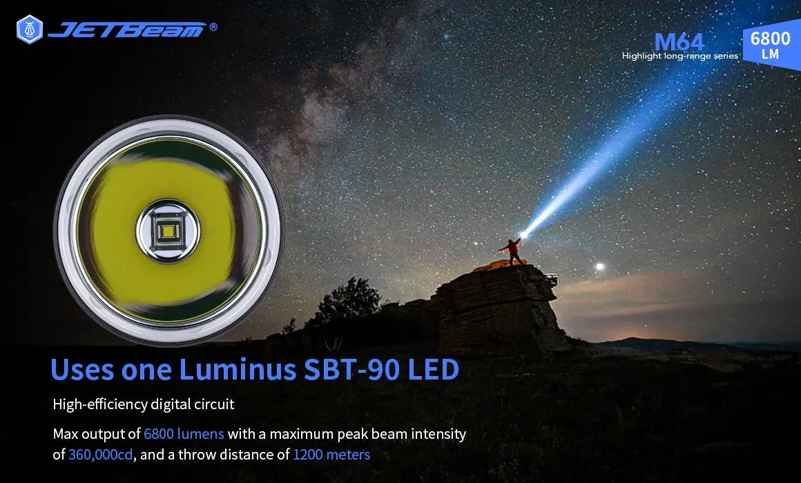 JETBeam M64 Powerful LED Flashlight Luminus SBT-90 6800 Lumen Torch for Search and Hu …