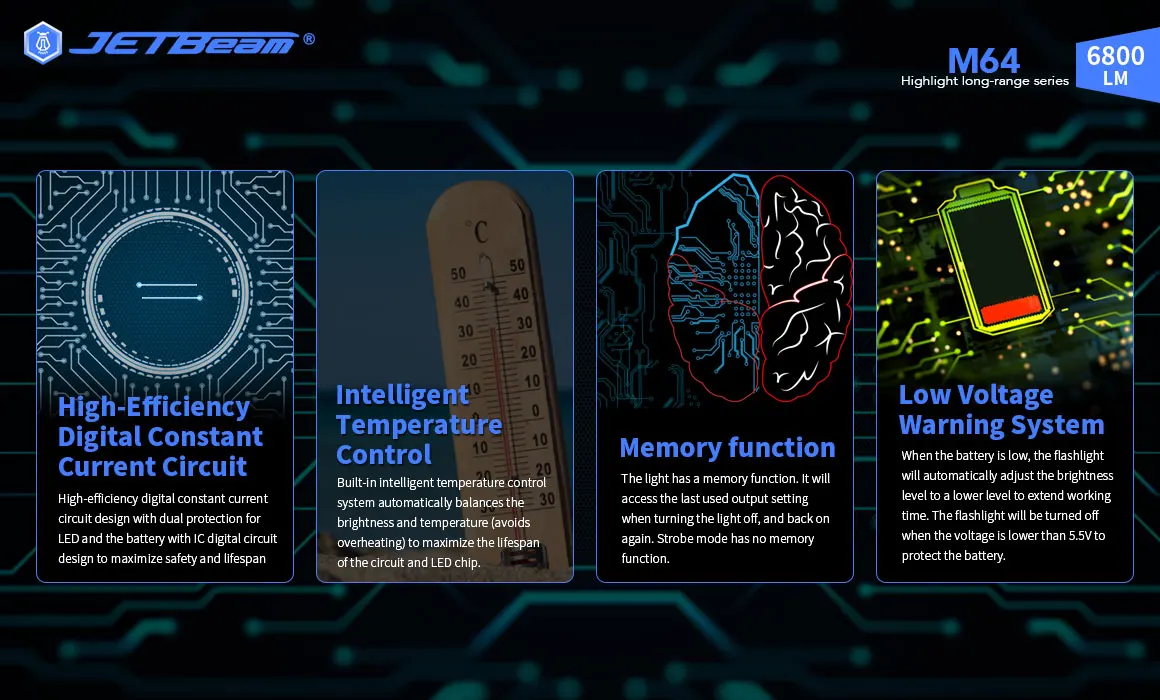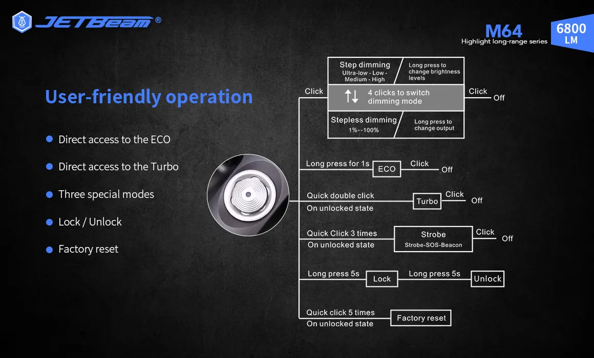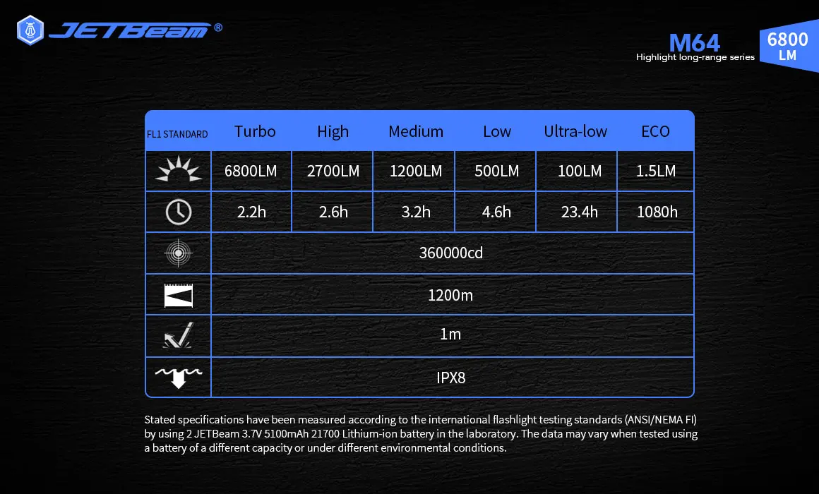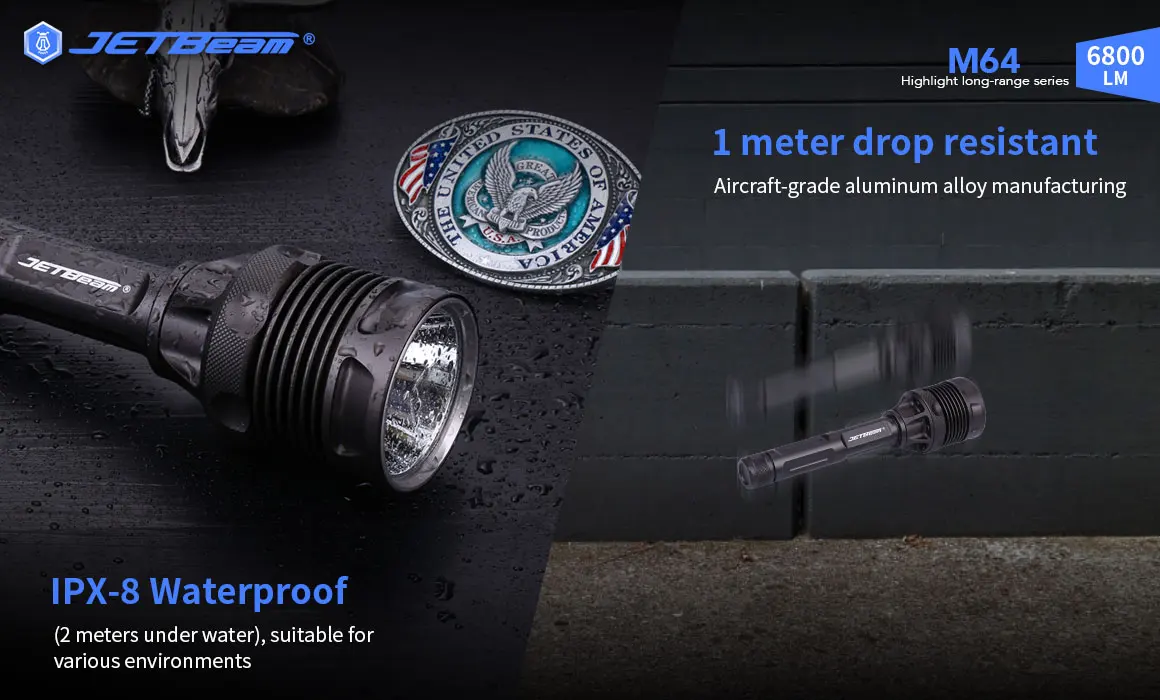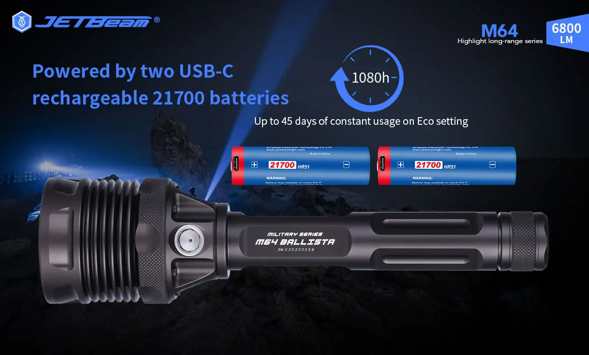 JETBeam M64 Powerful LED Flashlight Luminus SBT-90 6800 Lumen Torch for Search and Hu …