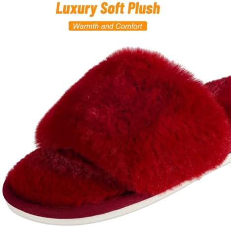Jussy Women’s Fuzzy Slippers Memory Foam Cute House Slippers Open Toe Plush Flu …