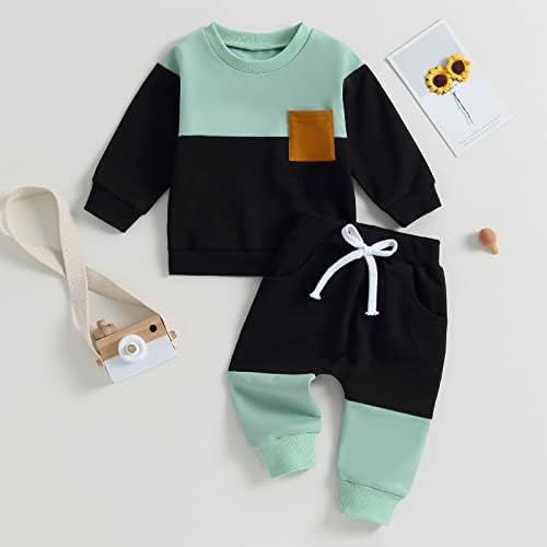 kacubwyy Toddler Baby Boy Outfits Long Sleeve Pocket Pull On Sweatshirt Solid Pants I …