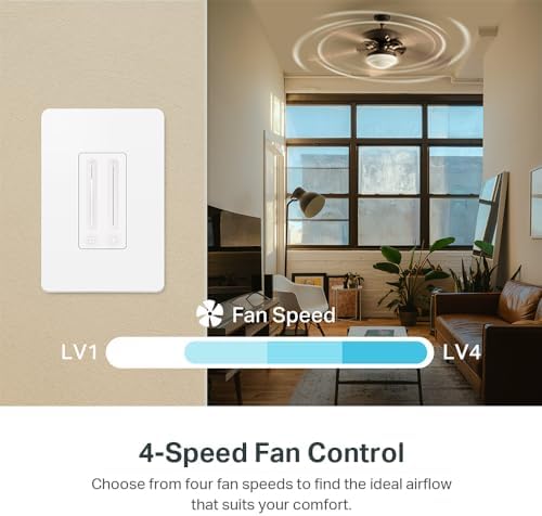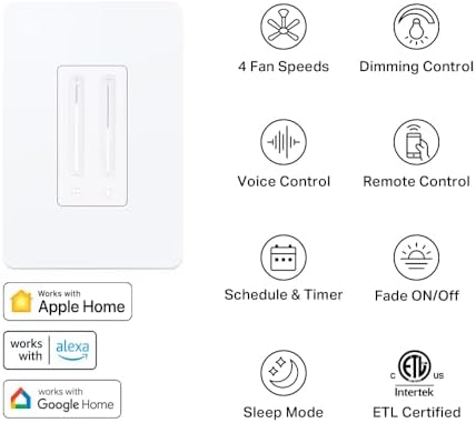 【Comfort and convenience at your fingertips】 Add comfort and convenience to your modern home—the Kasa Smart Fan Control & Light Dimmer allows you to control your fan and lights from anywhere using the Kasa Smart app or with voice commands using Apple HomeKit, Amazon Alexa, or Google Assistant. Its 2-in-1 functionality is designed to eliminate the inconvenience of pull chains and transform your old-fashioned ceiling fan light into a smart one! Choose from 4 fan speeds and adjust the light’s brightness on a scale of 1 to 100 to set the perfect ambiance for any occasion. Schedule your lights and fan to turn on and off automatically to always enter a welcoming home and to deter burglars while you’re away. Most importantly, have peace of mind both in and out of operation: featuring ETL certification, advanced safety features, and premium construction materials to prevent electrical overload and overheating.
