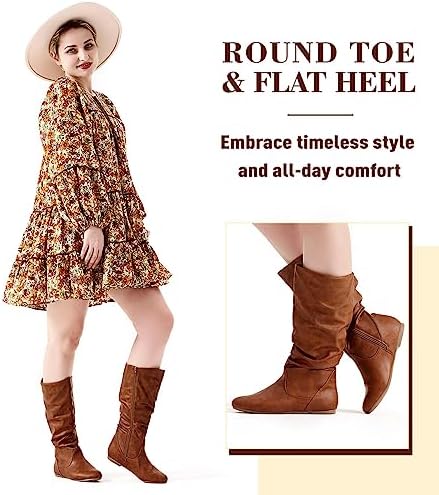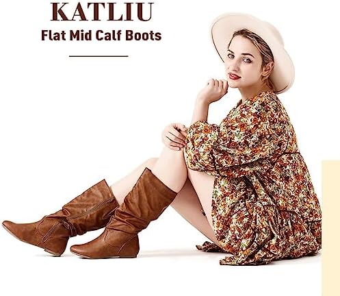 katliu Women’s Slouchy Mid Calf Boots Zip up Flat Boots