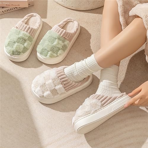 Kawaii Checkered Slippers Unisex Cute Fluffy Home Slippers Fuzzy Slippers