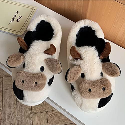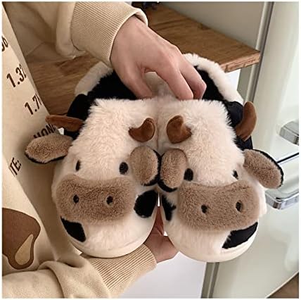 Kawaii Fuzzy Cute Cow Slippers for Women Winter Warm Cozy Animal Fluffy Kawaii House …