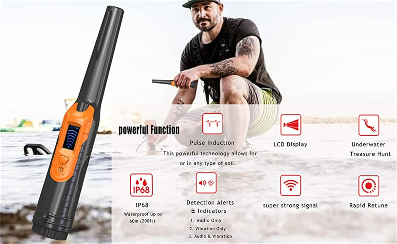 LCD Display Fully Waterproof Pinpoint Metal Detector Pinpointer360°Search Treasure P …
