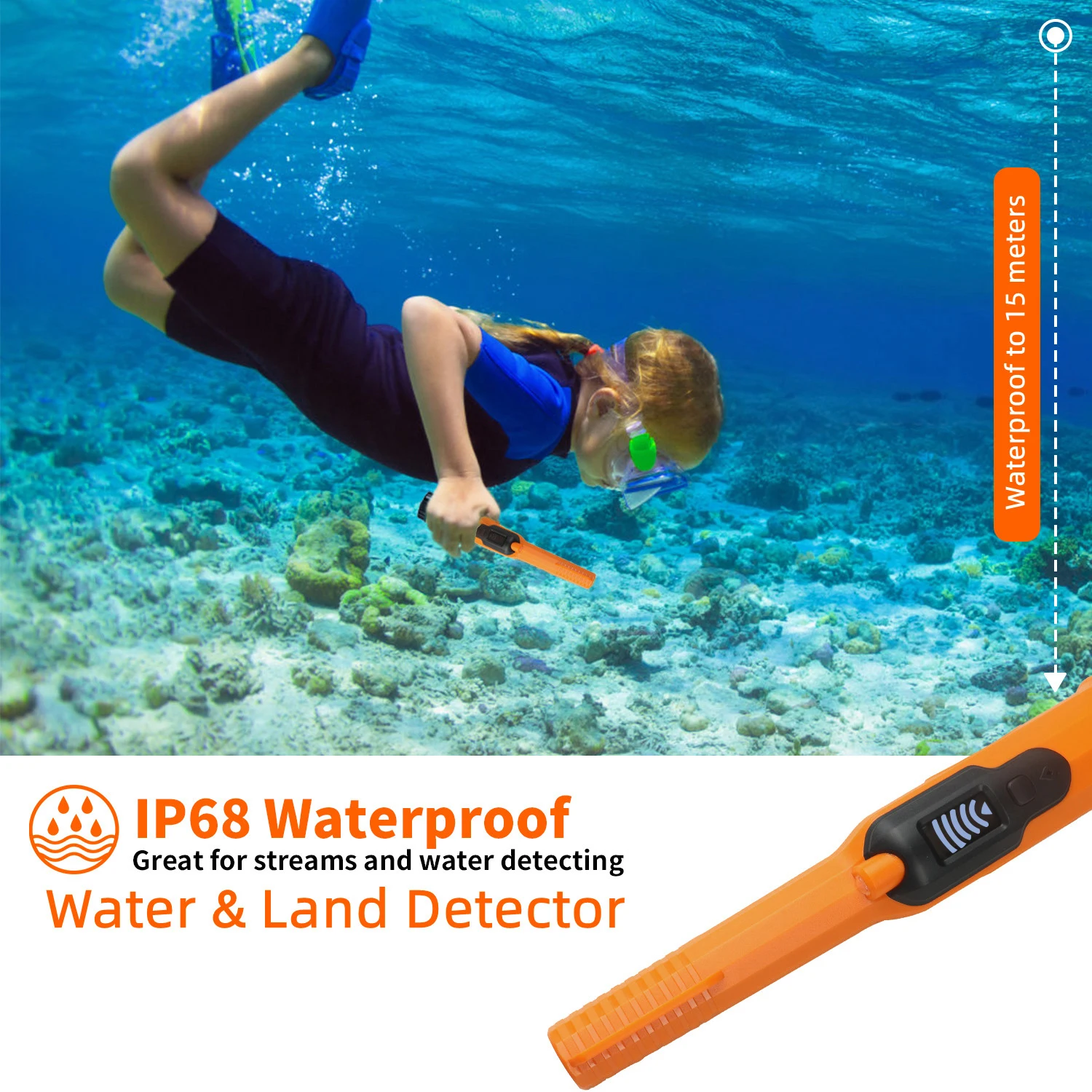 IP68 Waterproof Level: 50 Feet Full body waterproof metal detector.Leak Water.Free Refund.(Note: Before using a metal locator in water, make sure the rear cover is tightened.)
