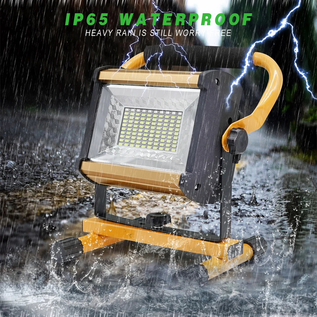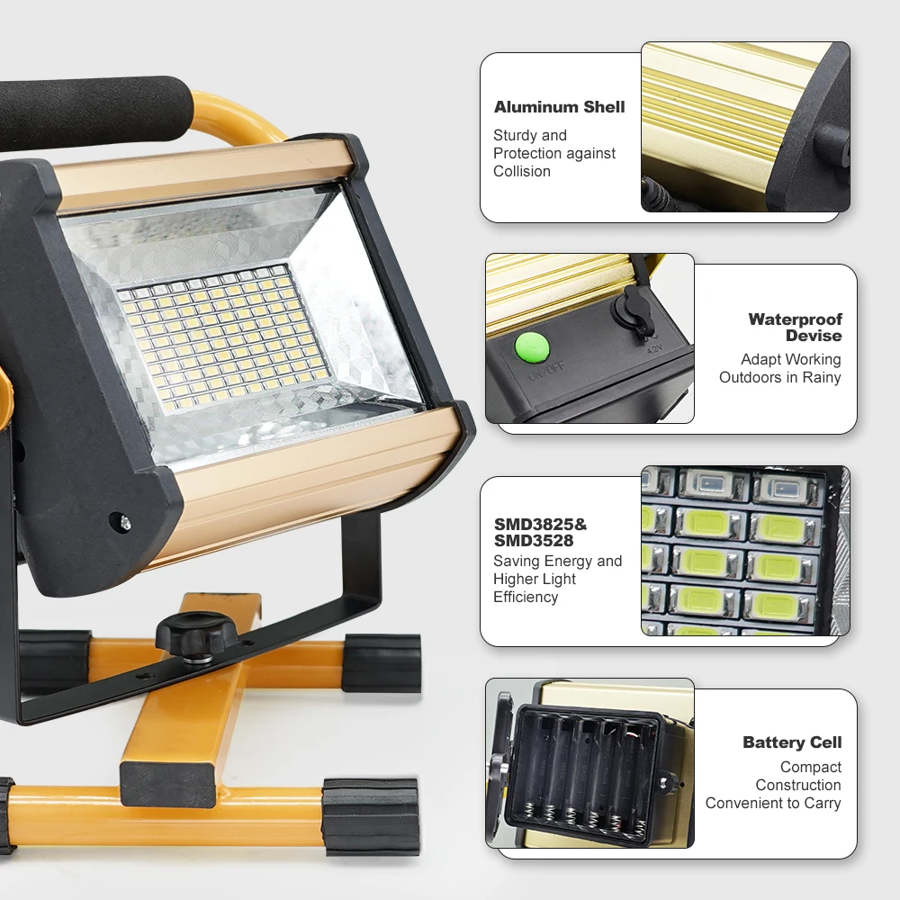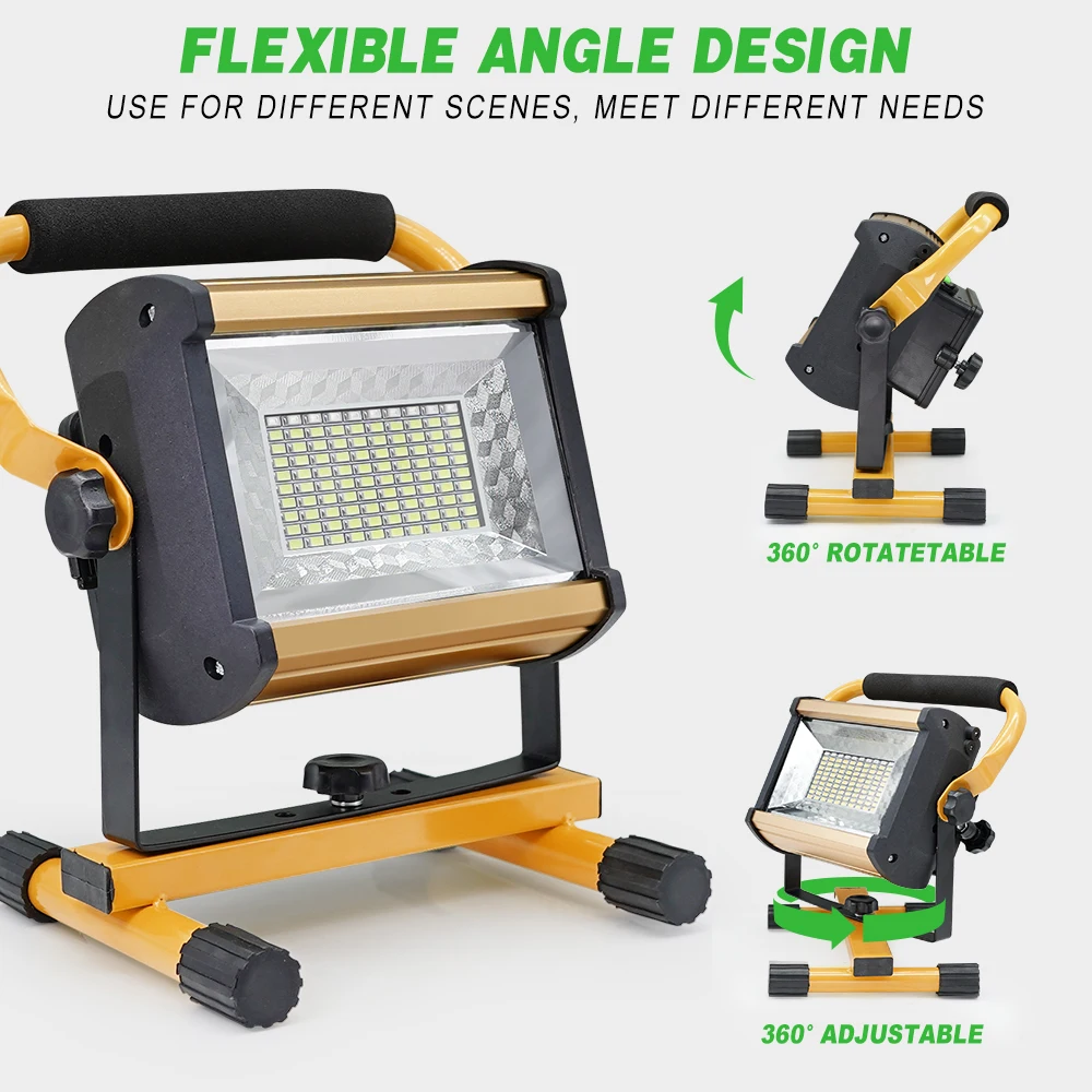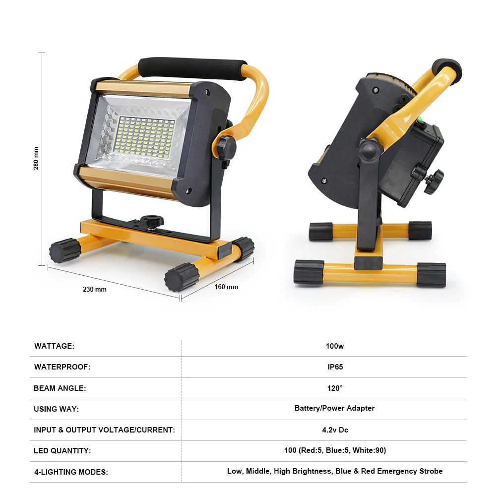 LED External Projector Light 100W Portable Spotlight Outdoor Waterproof Flood Light Rechargeable Floodlights by 6*18650 Battery