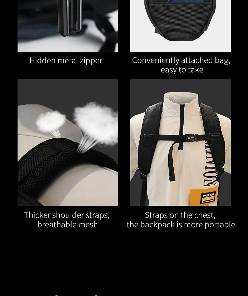 • 【How to use】Search on your mobile phone or directly scan the code to download the APP, plug in the mobile power supply through the built-in USB data port on the back, turn on the Bluetooth and scan the QR code to bind the backpack. You can connect the device and use it.