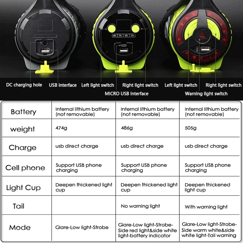 LED Rechargeable Search Light USB LED flashlight 2 side night light lamp hand Handle …