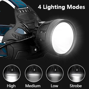 P70-2 LED ChipLED headlamp built-in advanced P70-2 LED chip for a maximum output of up to 90000 lumens, 20 times Brighter than Incandescent lamp. | 4 Lighting Modes4 Dimmable lighting modes for a better user experience. Press the button gently to change between lighting modes (High, Medium, Low, Strobe). | Red Warning LightThe red warning lights on the back of the head lamp play a good warning role. It is convenient for you to walk in the dark and will not be hit by vehicles and protect your safety. |