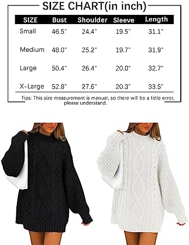 LILLUSORY Women’s Crewneck Oversized Sweater Dress 2023 Fall Cable Knit Long Sl …