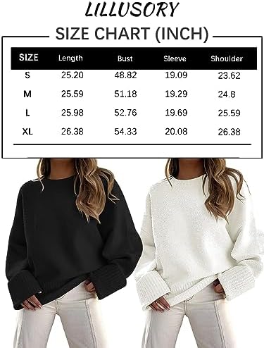 LILLUSORY Women’s Oversized Sweaters 2023 Fall Fuzzy Chunky Warm Pullover Sweat …