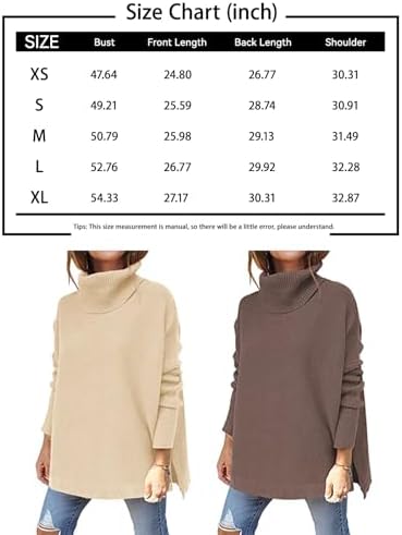 LILLUSORY Women’s Turtleneck Oversized Sweaters 2023 Fall Long Batwing Sleeve S …