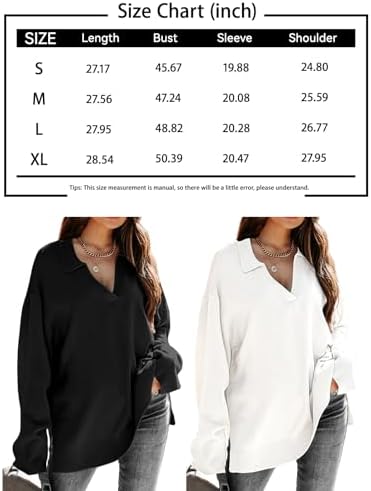 LILLUSORY Womens V Neck Collared Oversized Fall Sweater 2023 Sexy Long Sleeve Knit Pu …