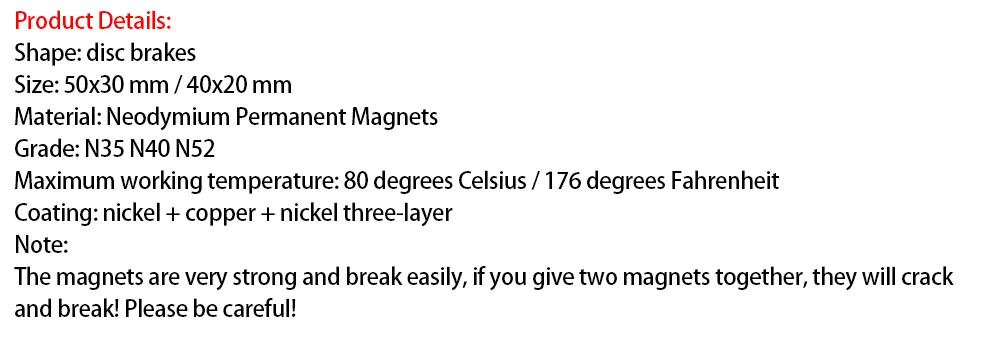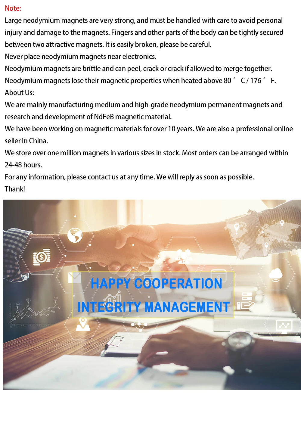 Attention: strong magnets are brittle; Strong magnet can strongly press fingers; If you let two magnets attract each other, it can crack and the chips can damage your eyes.