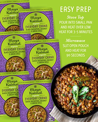 Maya Kaimal Organic Indian Black Chickpeas, Coconut & Green Chili Everyday Chana, Plant-Based Protein, Vegan Friendly, Kosher, USDA Certified Organic, Non-GMO, 10 Ounce (Pack of 6)