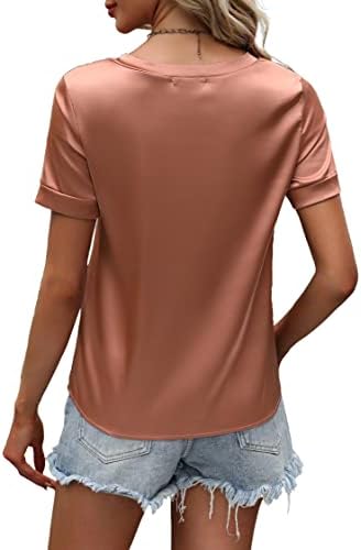Maysoar Womens Satin Blouses for Women Short Sleeve Shirts V Neck Blouses Summer Casu …