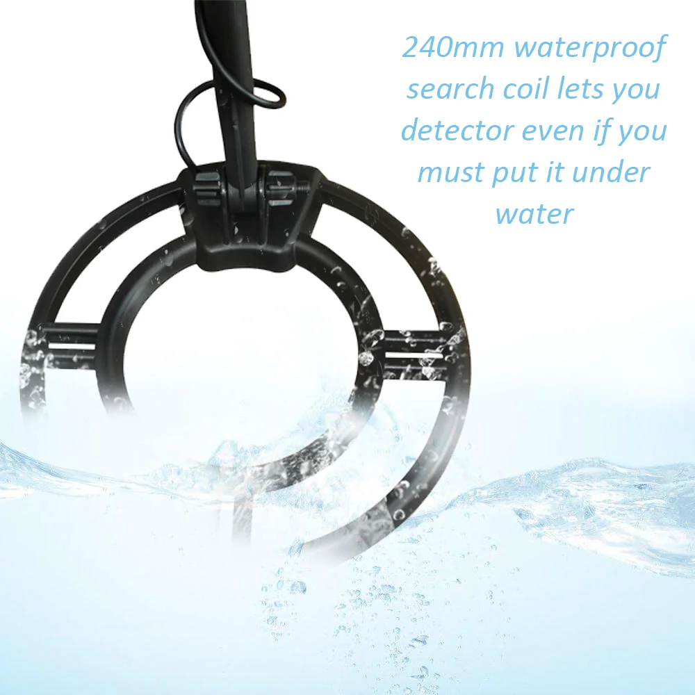 Waterproof Search Coil: allow you to operate in the shallow water, 9.6-inch(245mm) large size with high accuracy for more stable performance.