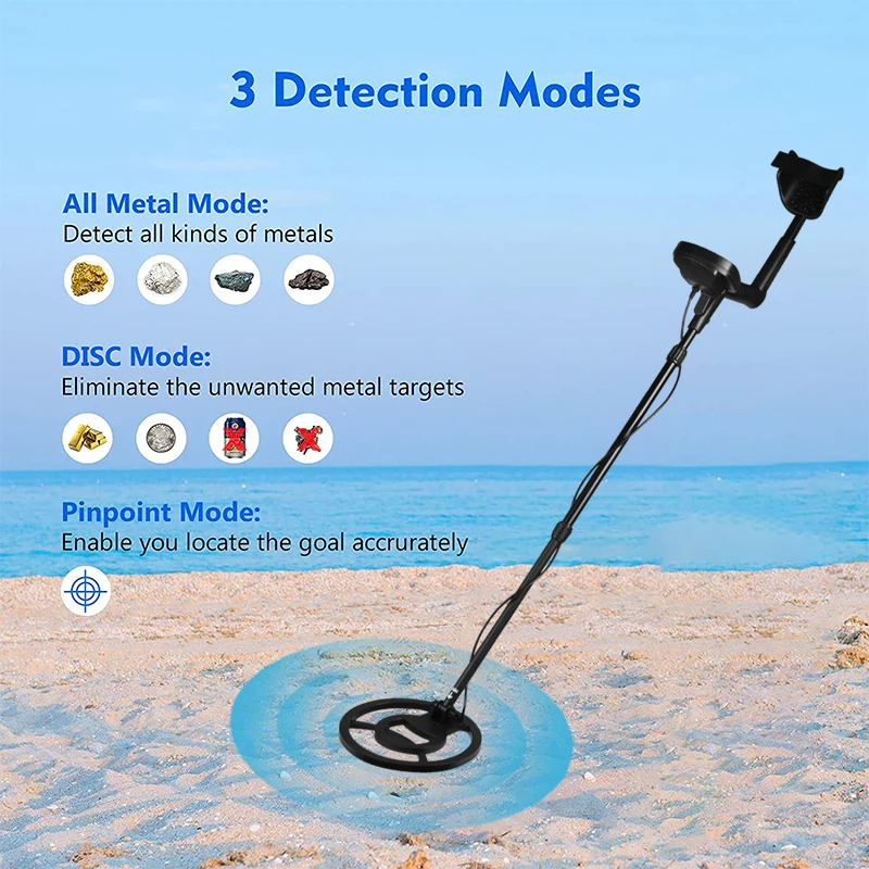 ALL METAL & DISC & P/P Modes: ALL METAL for detecting all types of metal. DISC for target discrimination, eliminate the target you don’t want. And after detecting the metal, P/P mode help to pinpoint the accurate location of the target detected.