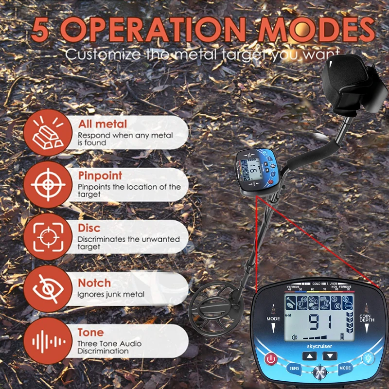 【3 Audio Prompts & Depth/Sensitivity Adjustable】: The unique audio prompt emits 3 different tones for different types of metals. Adjust the depth indication for objects 2", 4", 6", 8" with up or down key.