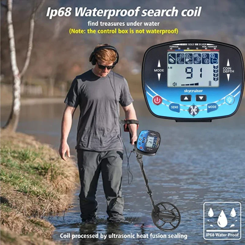 【10 Inch IP68 Waterproof Search Coil】: IP68 waterproof metal detector enables you to use detecting to underwater, not only suitable for gold digger in outdoor treasure hunting on beaches, seaside, shore, streams, gardens, parks, forests, etc, but also for finding lost metals, diamonds and cleaning unnecessary metals on farms and yards. (Note: the control box is not waterproof).