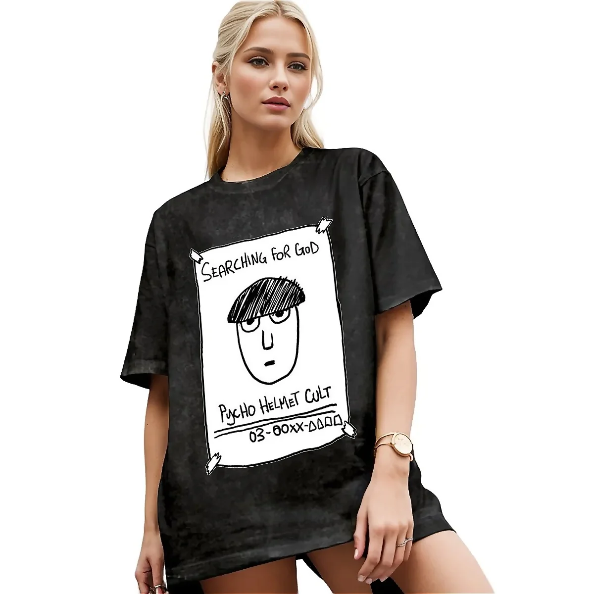 Mens T-Shirt Searching For God Washed T-Shirts Hip Hop Shigeo Kageyama Summer Tees Ae …