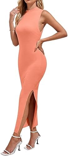 MEROKEETY Women’s 2024 Sleeveless Mock Neck Knit Sweater Dress Ribbed Bodycon S …