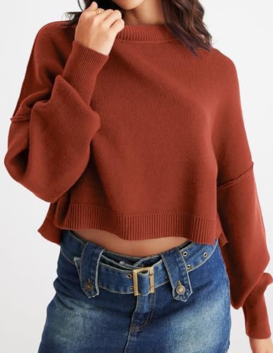 MEROKEETY Women’s Crewneck Cropped Sweater 2023 Fall Batwing Sleeve Oversized S …
