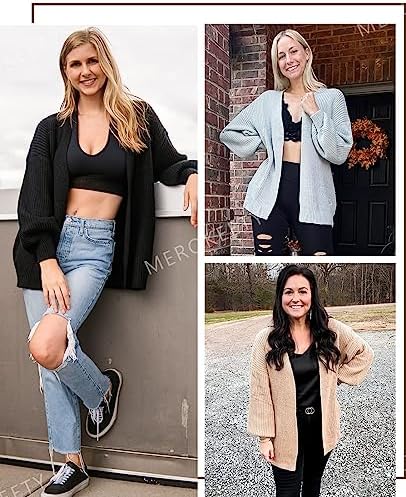 MEROKEETY Women’s Open Front Long Lantern Sleeve Cardigan Oversized Chunky Outw …