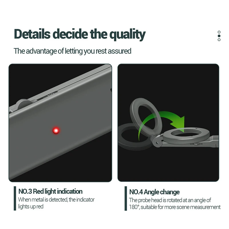 4. Red light indicator: when metal is detected, the indicator light is red.