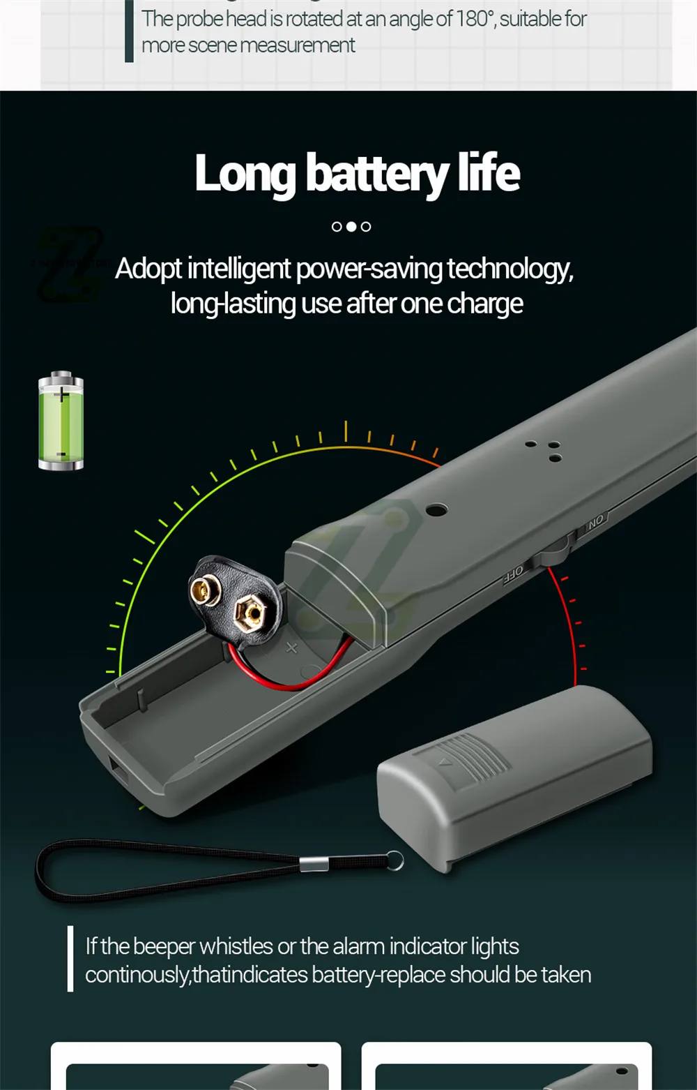 2. Turn on the detector, and the buzzer will emit a beep to indicate that the detector is ready for operation. (If the buzzer buzzes or the alarm indicator lights up continuously, it indicates that the battery should be replaced)