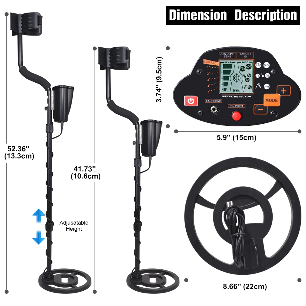 【LCD screen with light】There is a LCD display on the metal detector which shows different functions, such as mode, depth and sensitivity. It is very easy for user to operate and track. And LCD lights are suitable for identification of metal in night or caliginous outside.