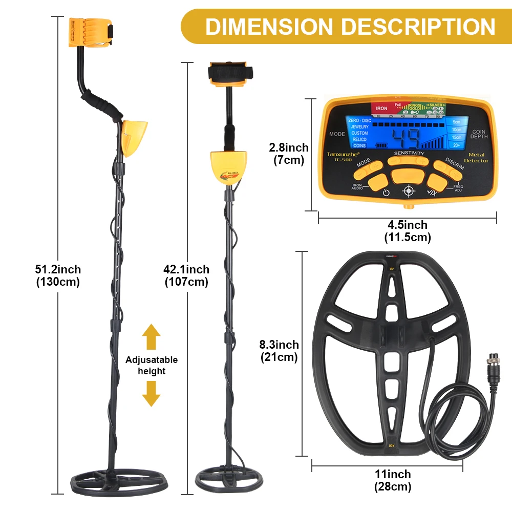 3. The height of the metal detector is adjustable, with ground balance and exploration mode recognition.