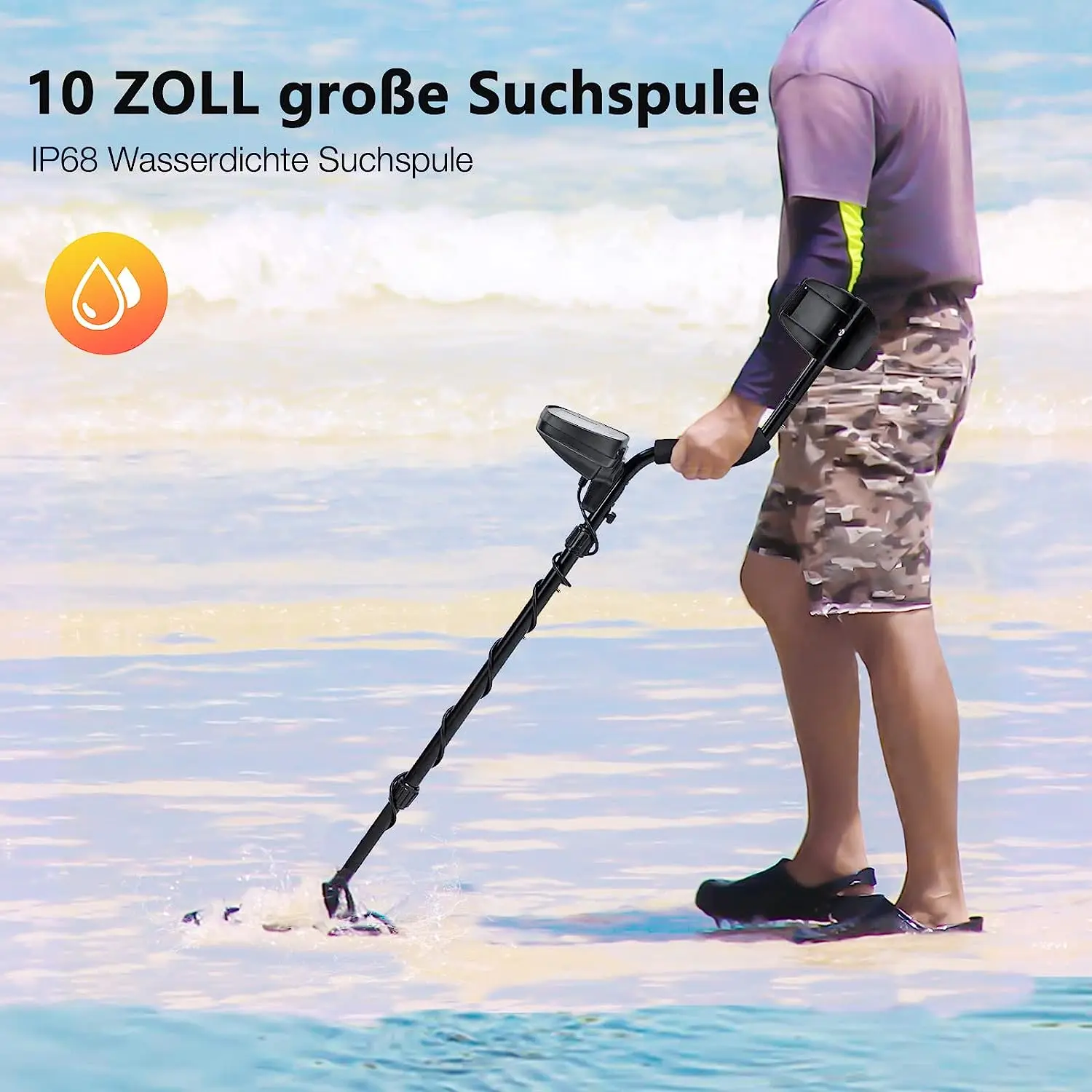 【10 Inch IP68 Waterproof Search Coil】: IP68 waterproof metal detector enables you to use detecting to underwater, not only suitable for gold digger in outdoor treasure hunting on beaches, seaside, shore, streams, gardens, parks, forests, etc, but also for finding lost metals, diamonds and cleaning unnecessary metals on farms and yards. (Note: the control box is not waterproof).