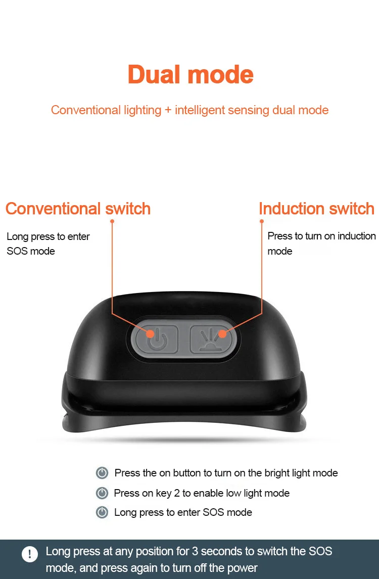 Intelligent Sensing Technology: Different from other products, our headlamp is equipped with the latest smart sensors. Easily control the light on and off by waving your hand even if you have gloves on, won’t dirty the unit.