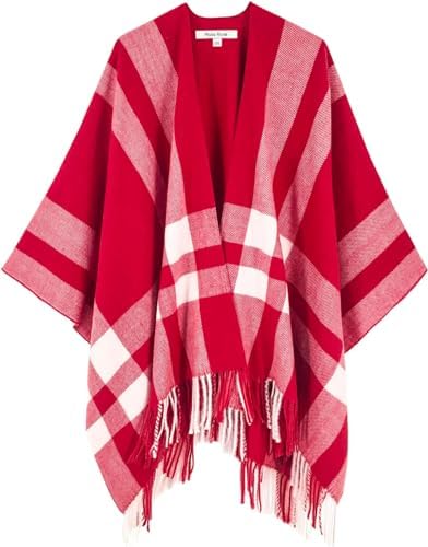 Moss Rose Women’s Travel Plaid Shawl Wrap Open Front Poncho Cape for Fall Winte …