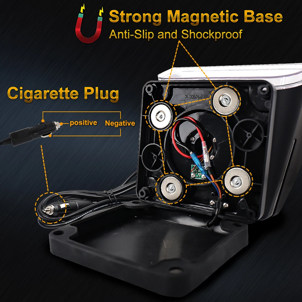 Multiple Installation method: Mounts with Magnet, Screws, Cable Ties. Mounts with Magnet, this remote search light use super strong magnet, and 6 pieces strong magnets in the base, it could against 10 levels of gales, no worry for falling when driving. Mounts with Screws or Cable Ties, this searchlight has 4 screw hole in the bottom, it could install in any place you want.