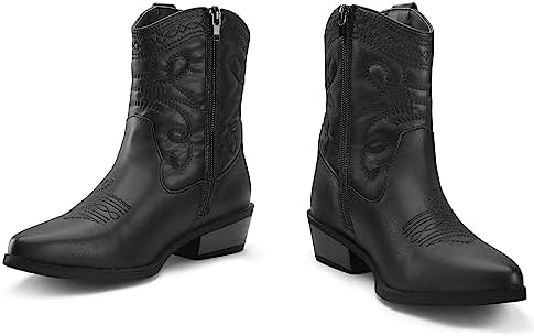 mysoft Women’s Fashion Western Cowboy Ankle Boots Short Cowgirl Low Heel Bootie …