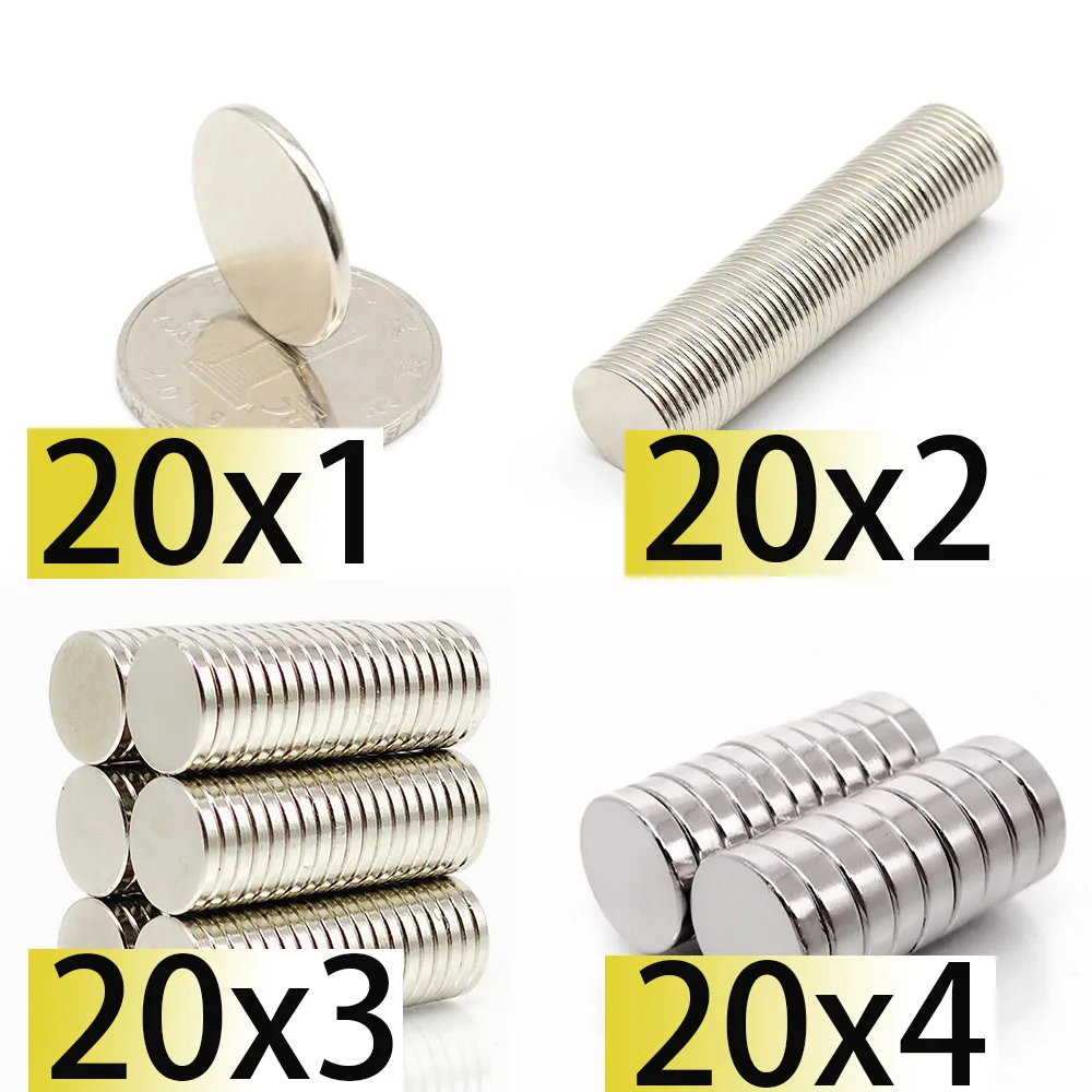 Product Description:10pcs 20pcs 50pcs 20x1mm 20x2mm 20x3mm 20x4mm Magnet Superpower 20*4mm N35 Neodymium Magnets for Door Search Magnetic Fridge DIY Crafts Aimant Strong DISCProduct features: