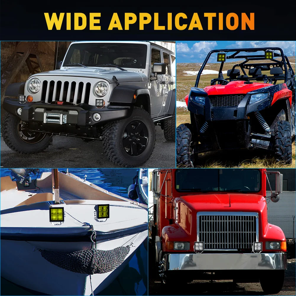 Our LED light pod is suitable for all kinds of 10V-30V, Off Road, Jeep, Truck, SUV, ATV, UTV, Car, Tractor, Boat,Motorcycle,Construction Lighting, etc