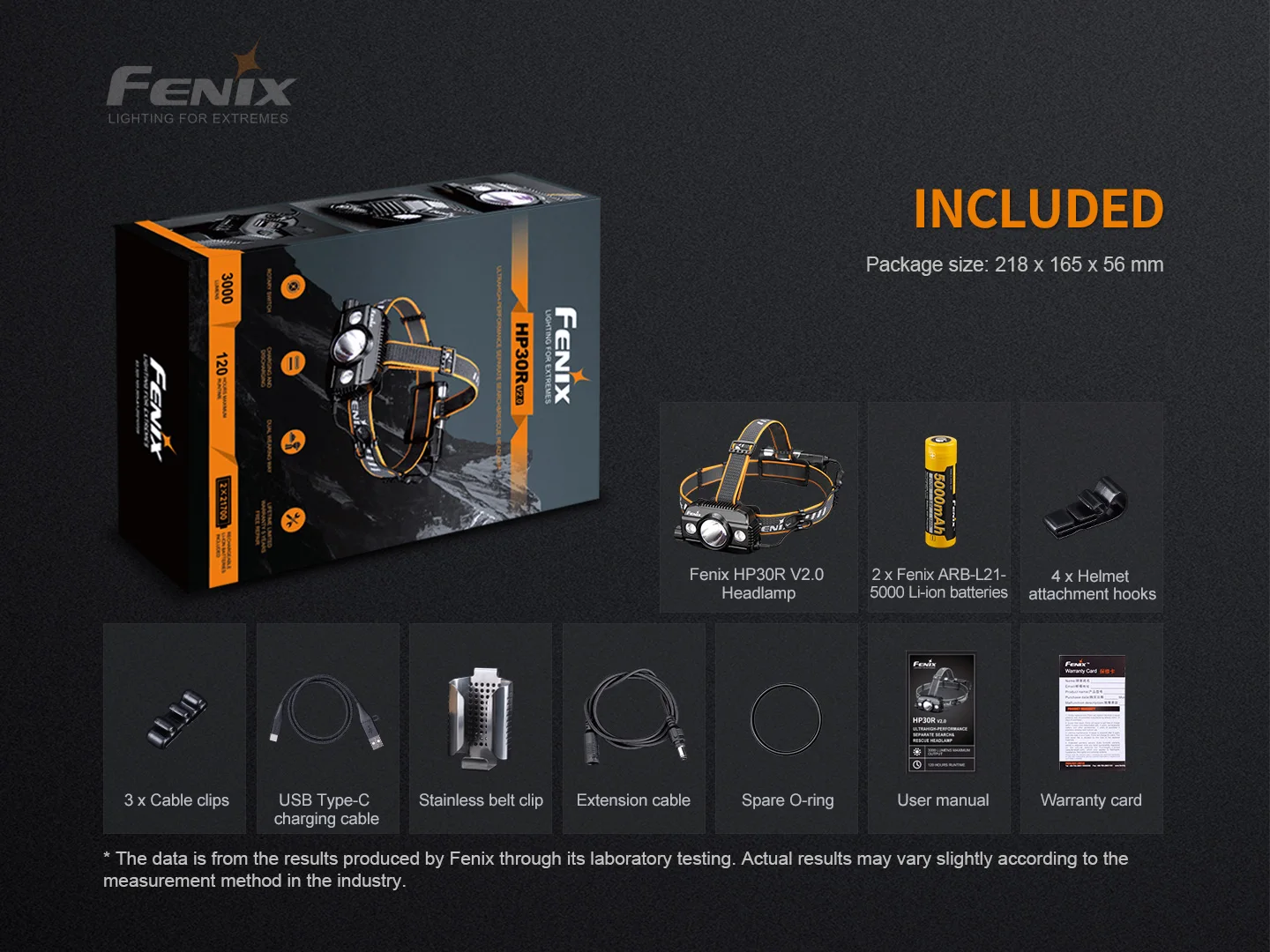 The upgraded version Fenix HP30R V2.0 is a rechargeable high-performance separate headlamp. The power comes from the two included 21700 rechargeable batteries that allow for extended runtime in an easy-to-recharge case with the unique ability to also charge your other digital devices as a power bank. The 3 unique LED's can all be used at once to disperse an amazing 3000 lumens that reaches over 270 meters. The versatility of this headlamp begins with the belt-worn battery case that allows for lightweight and comfortable design on the head. The unique ability to utilize both flood and spot levels at once provides you adaptable light. The HP30R V2.0 can be a life-saving tool to search and rescue professionals.