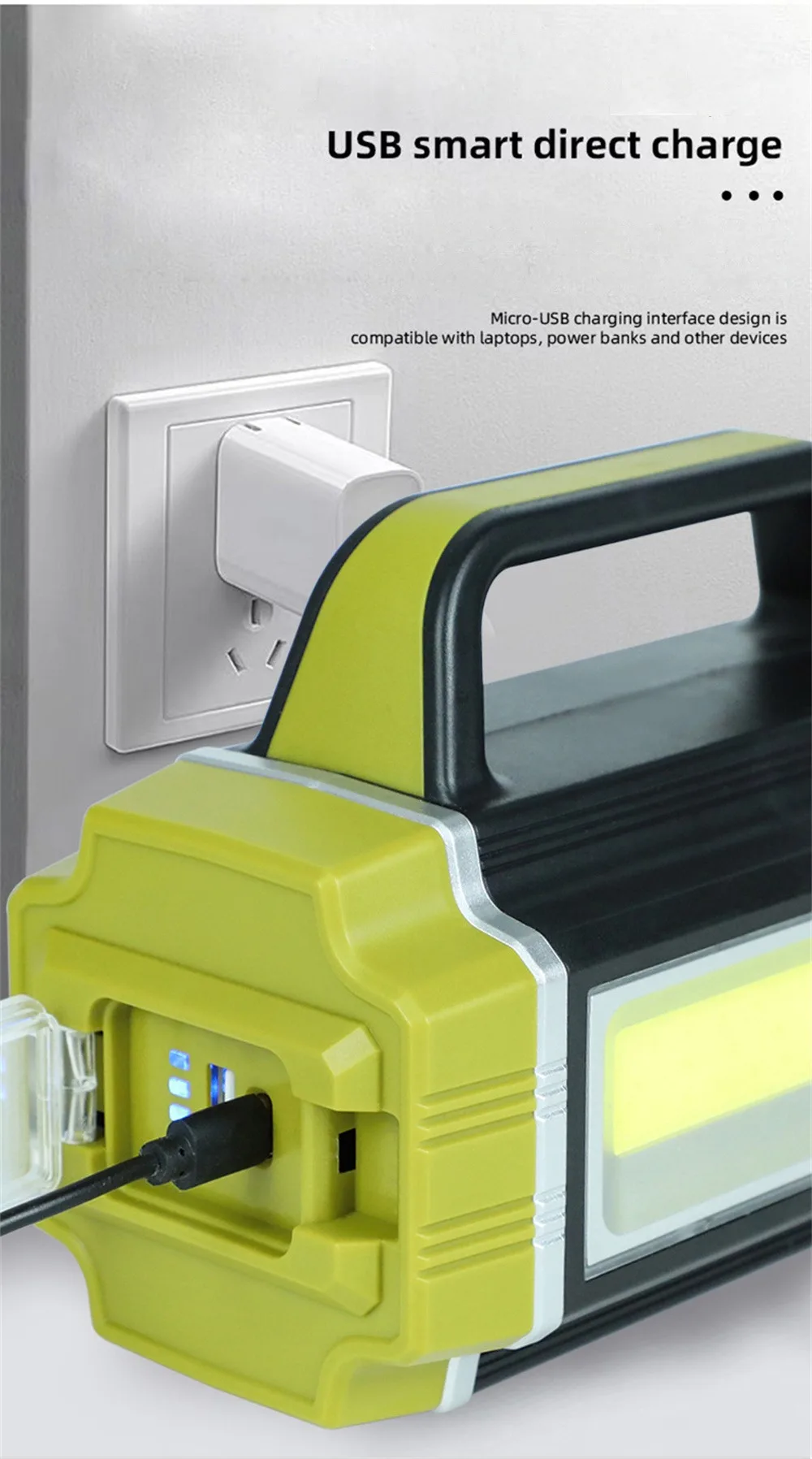 2. USB intelligent direct charging, Micro USB charging interface design, compatible with devices such as laptops and power banks.