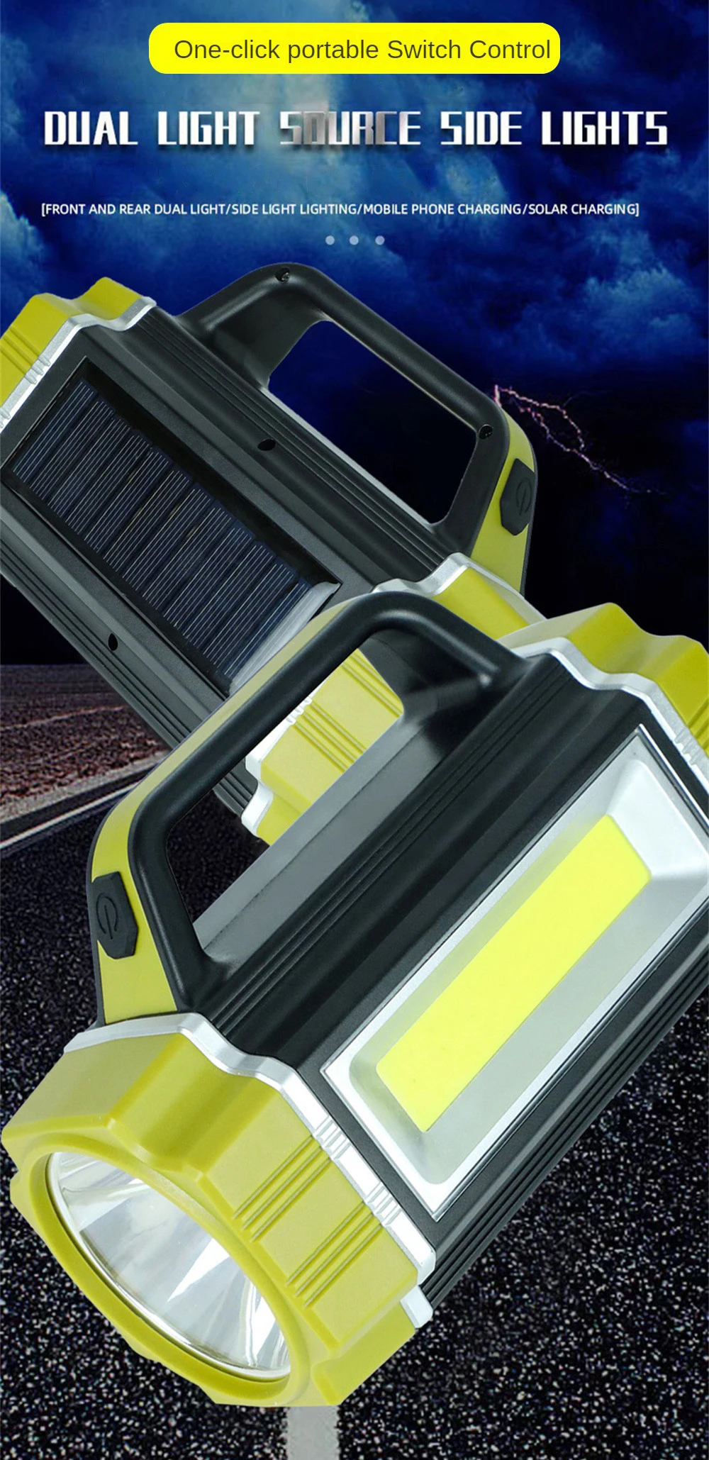 New Multi-function Outdoor Waterproof Solar Cell Phone Charging Portable Lamp Powerful Night Fishing Search Flashlight Camping