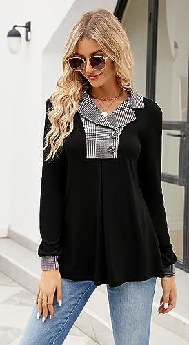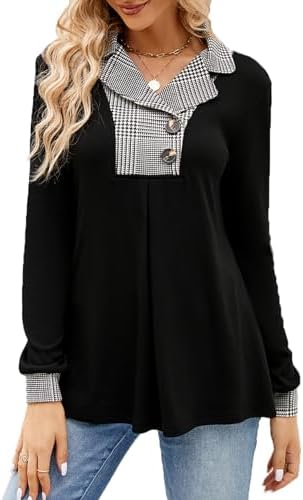 Newchoice Womens Long Sleeve Tunic Tops for Leggings Casual Collared Button Sweatshir …